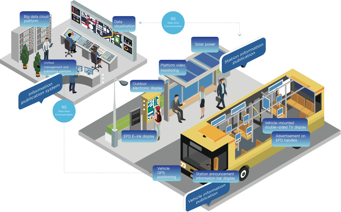 • System operation, business data, vehicle management, and real-time dynamic presentation
